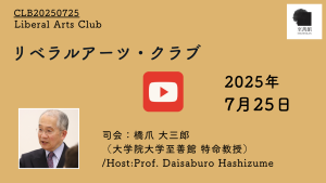 HOME 投稿日 – What’s New – プレゼント企画 動画「『鎌倉仏教革命』をめぐる対話」橋爪大三郎×大澤真幸2025年10月14日 リベラルアーツ・クラブを開きます(10月26日(日)21時より)2025年10月11日 リベラルアーツ・クラブを開きます(9月26日(金)21時より)2025年9月15日 ブッククラブ『加藤典洋とは何者だったか?』(9月24日)参加者募集!2025年9月6日 プレゼントキャンペーン『ゆかいな仏教』2025年9月6日 続きを見る – VIDEO – 竹田青嗣 × 笘野一徳 至善館 リベラルアーツ・ブッククラブ 『伝授! 哲学の極意(河出新書)』 『私にとってのリベラルアーツ』野田智義学長インタビュー聴き手:近藤誠一 【特別対談:大來 尚順氏】リベラルアーツ・センター 日本橋研究会「鎌倉仏教革命」 『私と哲学』西研教授インタビュー(聴き手:橋爪大三郎) 『今なぜ哲学なのか』竹田青嗣氏インタビュー(聴き手:石上遼) 橋爪大三郎教授 至善館7期生 座談会 西研特別授業『ソクラテスの弁明』(第1回) リベラルアーツ・クラブ(20250830) リベラルアーツ・クラブ(20250725) 映像一覧を見る