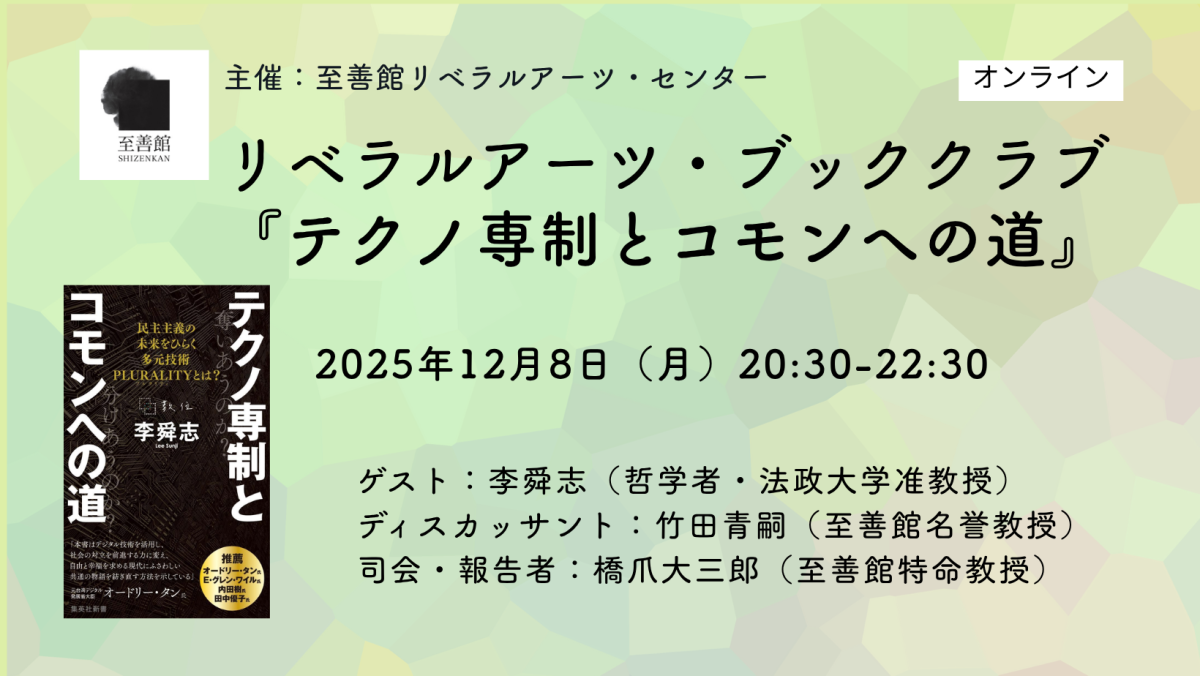 - 課題図書 李舜志『テクノ専制とコモンへの道』(集英社新書、2025年6月刊、1,080円+税)